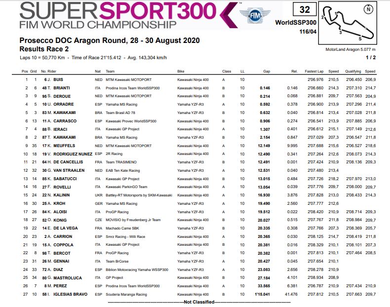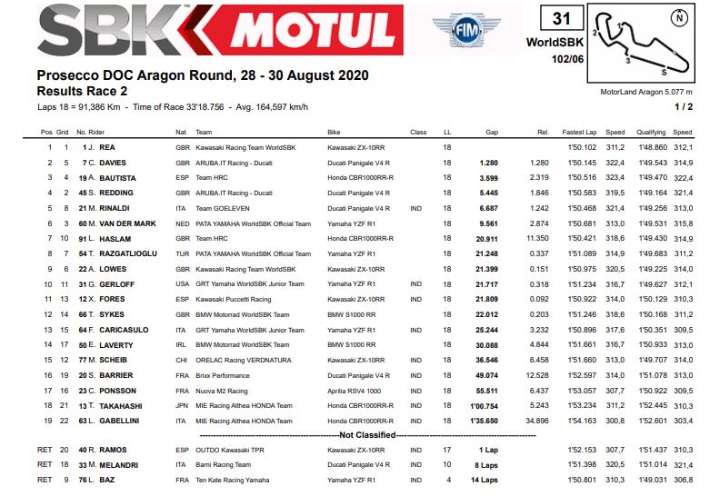 Hasil Race 2 WorldSBK Aragon 2020 Semua KelasPenulis Fajar Sulistiono - 30/08/2020Race 2 WorldSBK Aragon 2020 |Foto: WSBK BalapMotor.Net – Berikut ini merupakan hasil dari race 2 gelaran WorldSBK seri ke 4 yang bertajuk Prosecco DOC Aragon yang berlangsung di sirkuit Aragon Spanyol pada hari minggu 30 Agustus 2020.
