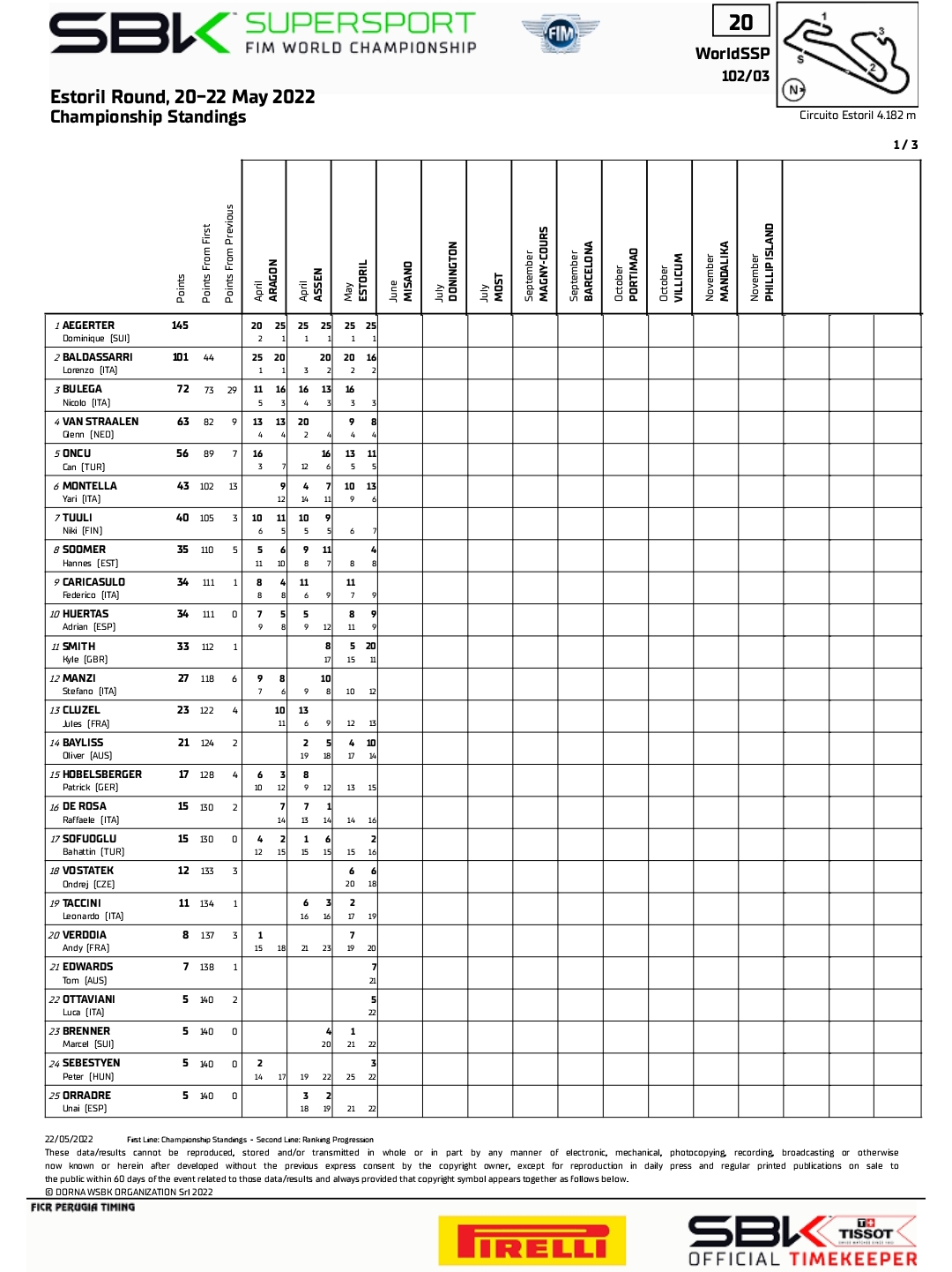 Hasil Race 2 WorldSBK Estoril dan Klasemen Sementara 2022Penulis Yugo Aol - 23/05/2022 BalapMotor.Net – Berikut kami paparkan hasil race dua kejuaraan dunia Supersport dan Superbike putaran ketiga yang berlangsung di sirkuit Estoril, Portugal pada Minggu 22 Mei 2022 dan klasemen sementara musim ini.