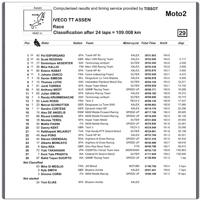Hasil Race Moto2 Seri 7 Sirkuit assen Belanda 29 juni 2013