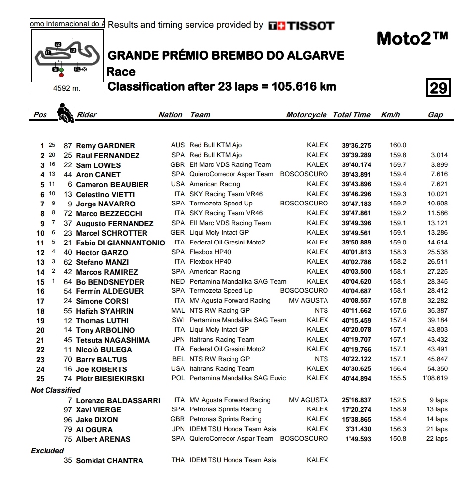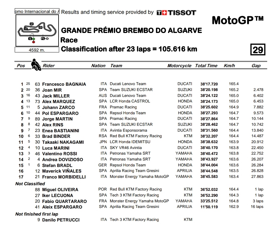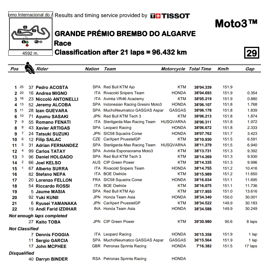 Hasil Race MotoGP Algarve 2021 Semua KelasPenulis BalapMotor.net - 08/11/2021 BalapMotor.Net – Berikut merupakan hasil race semua kelas dari gelaran MotoGP Algarve 2021 yang berlangsung di Autodromo Internacional Do Algarve Portugal pada 7 November 2021.