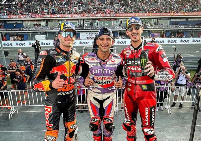 Podium MotoGP Thailand, Martin, Pecco dan Binder | Foto : MotoGP