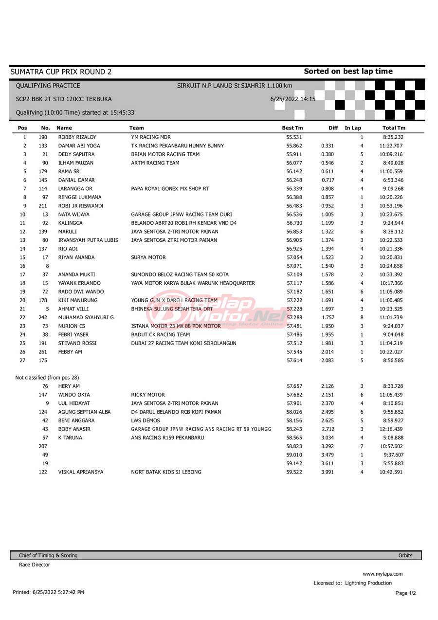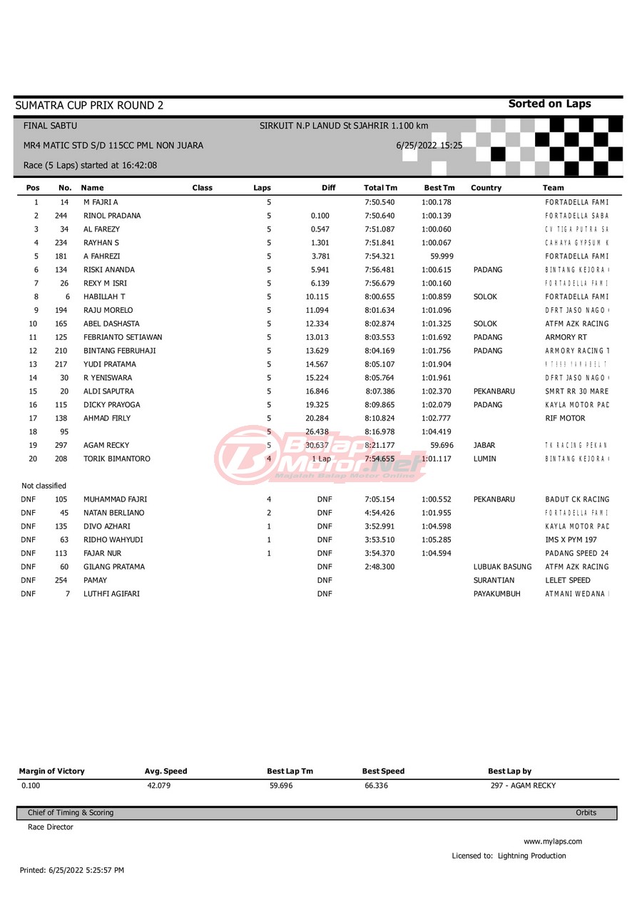 Hasil Sumatera Cup Prix (SCP) Padang 2022 Hari Sabtu