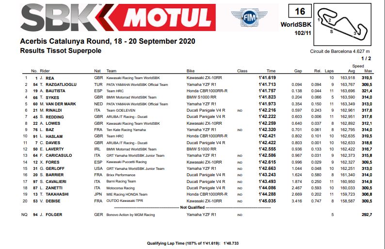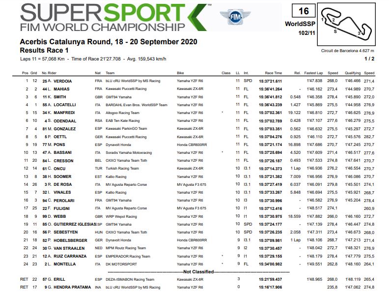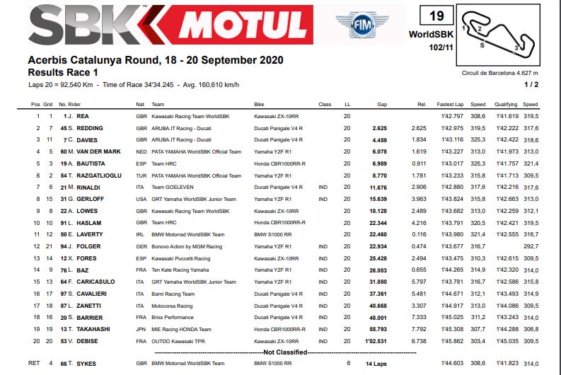 Hasil Superpole Dan Race 1 WorldSBK Catalunya 2020 Semua KelasPenulis Fajar Sulistiono - 19/09/2020Foto: WorldSBK 2020 BalapMotor.Net – Berikut ini merupakan hasil dari Superpole dan Race 1 gelaran WorldSBK seri ke 6 yang bertajuk Acerbis Catalunya Round yang berlangsung di sirkuit Catalunya, Spanyol pada 19 September 2020.Superpole Race 1