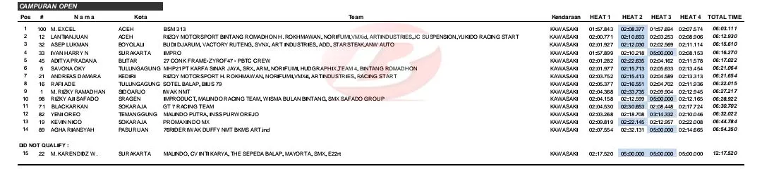 BalapMotor.Net – Berikut merupakan hasil kejuaraan Trial Game Dirt (TGD) putaran ketiga yang berlangsung di sirkuit NP. Lapangan Dukuhwaluh, Purwokerto pada 7-8 Juli 2023. (***)