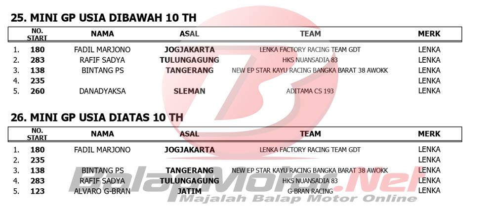 BalapMotor.Net – Berikut merupakan hasil resmi dari gelaran VSC Old & New Year Nite Race 2020 yang berlangsung di sirkuit NP Stadion Mandala Krida Yogyakarta pada 31 Desember 2019-1 Januari 2020. | Luvo