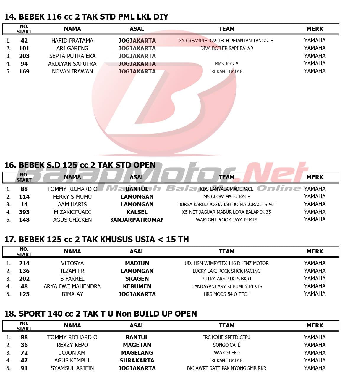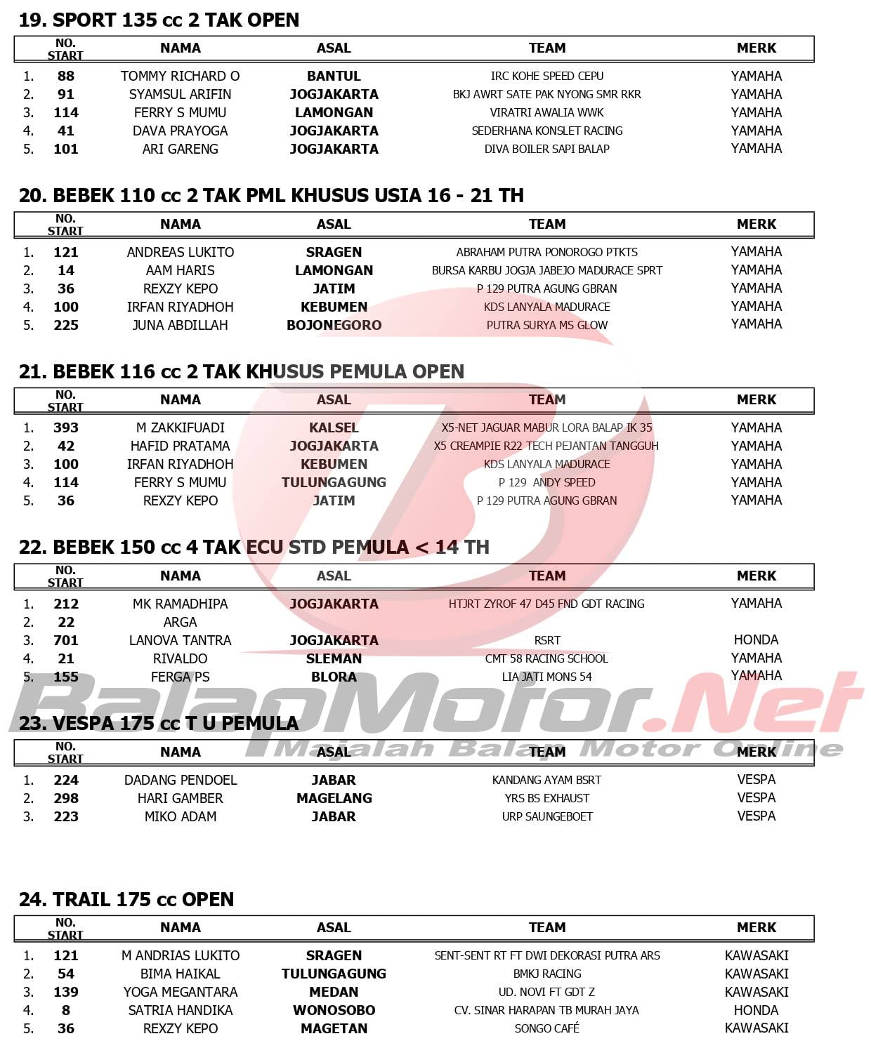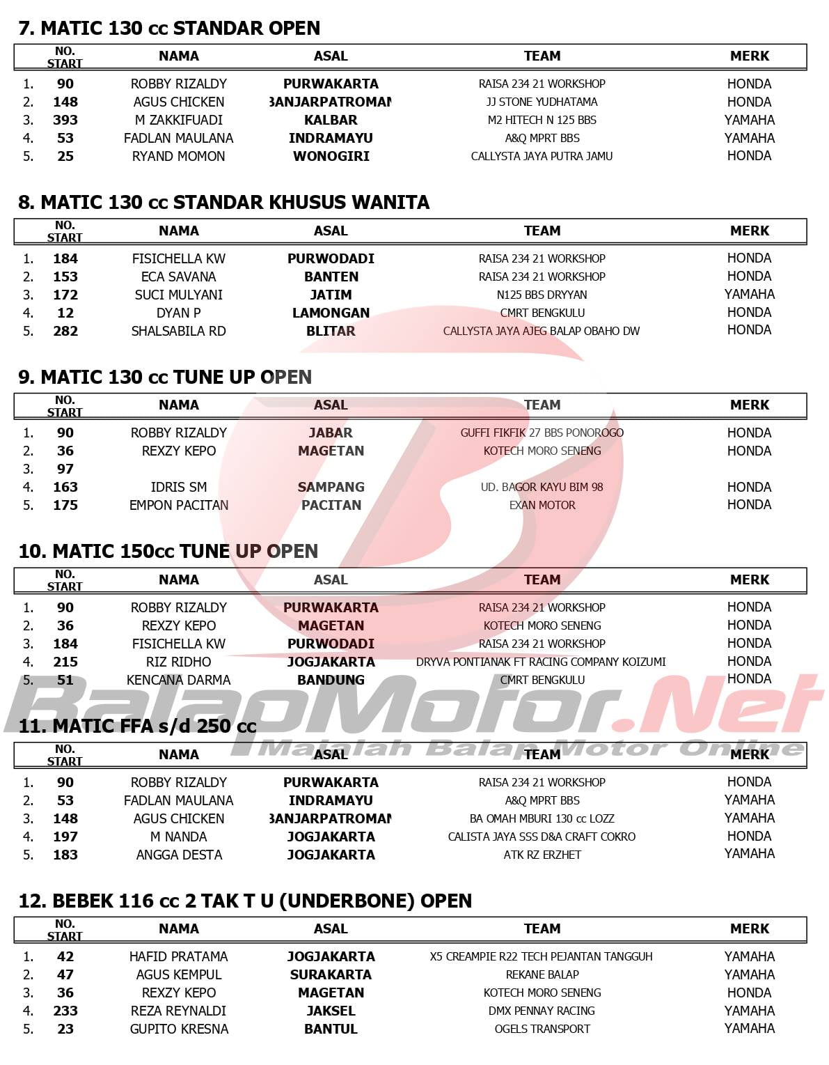 BalapMotor.Net – Berikut merupakan hasil resmi dari gelaran VSC Old & New Year Nite Race 2020 yang berlangsung di sirkuit NP Stadion Mandala Krida Yogyakarta pada 31 Desember 2019-1 Januari 2020. | Luvo
