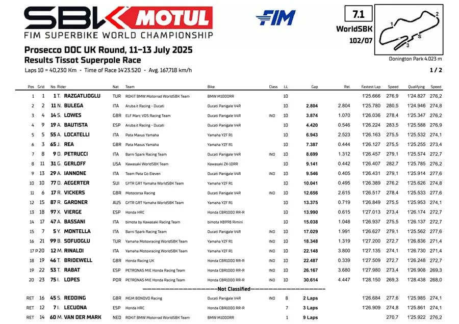 Hasil Superpole Race & Race 2 WorldSBK Inggris 2025: