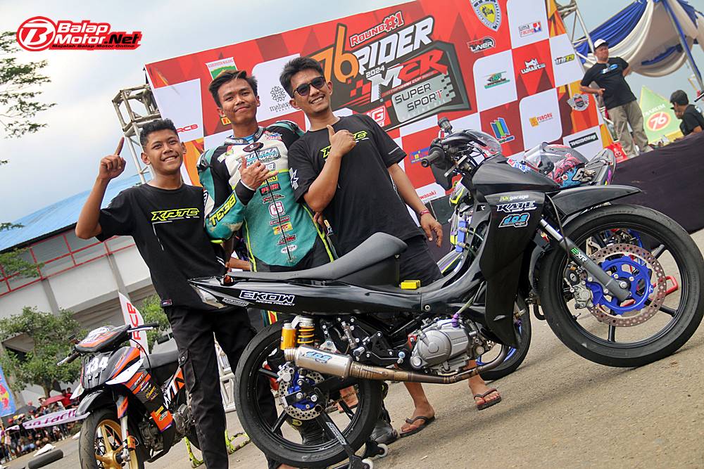 “Alhamdulillah menjaga tradisi Jupie EKDW Naga Hitam,” jelas Hildan yang didampingi manager Novan. Perlu diketahui juga, motor ini menerapkan riset terbaru untuk bertarung di ajang MCR.