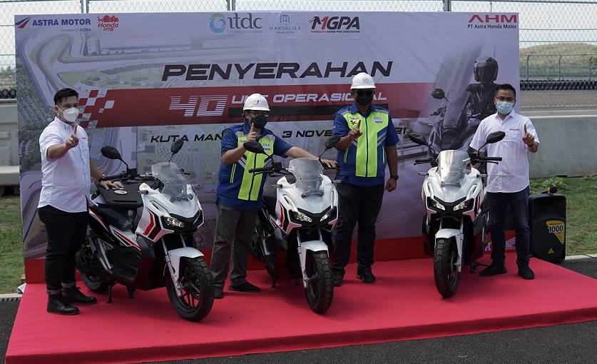 BalapMotor.Net – PT Astra Honda Motor (AHM) menyerahkan 40 unit Honda ADV150 kepada Indonesia Tourism Development Corporation (ITDC) dan Mandalika Grand Prix Association (MGPA) sebagai bentuk dukungan terhadap operasional Pertamina Mandalika International Street Circuit. Honda ADV150 juga akan menjadi kendaraan resmi ajang balapan internasional perdana di sirkuit kebanggaan bangsa Indonesia ini, yaitu Idemitsu Asia Talent Cup (IATC) dan World Superbike (WSBK).