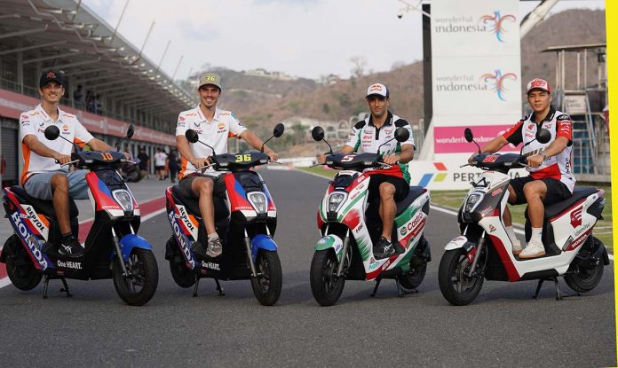 BalapMotor.Net – Sepeda Motor Listrik Honda EM1 e: dan juga Honda PCX 160 berduet di paddock Repsol Honda Team (RHT) sebagai kendaraan operasional pebalap dan juga tim pada gelaran balap dunia MotoGP Mandalika. Sebanyak 4 unit Honda EM1 e: dan 2 unit Honda PCX 160 dihadirkan PT Astra Honda Motor (AHM) dengan desain livery spesial Repsol Honda Team (RHT). Kepraktisan sepeda motor listrik Honda beserta matik besar berperforma tinggi ini siap mendukung perjuangan Joan Mir dan Luca Marini, maupun tim dari RHT selama berada di Pertamina Mandalika International Street Circuit.