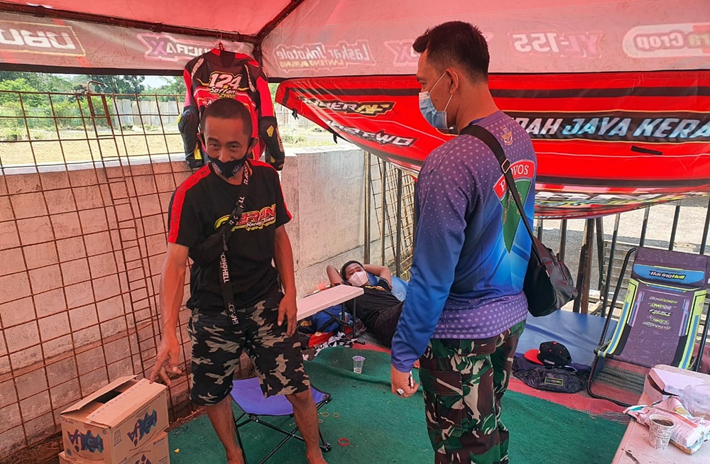 Peserta mulai dari pembalap, mekanik, crew hingga bos tim diwajibkan memakai masker dan selalu menjaga jarak satu sama lain. Ini wajib hukumnya bagi yang hadir di sirkuit Gery Mang Subang.