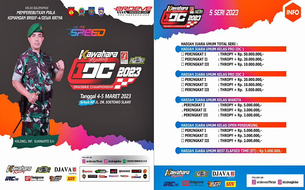 “Hadiah juara umum Kawahara Djava K2R IDC Drag Bike Championship 2023 meningkat dari tahun sebelumnya. Selain juara umum total seri, kita juga akan berikan hadiah juara umum tiap seri,” jelas Yudha Erdeve saat launching event di Prambanan.