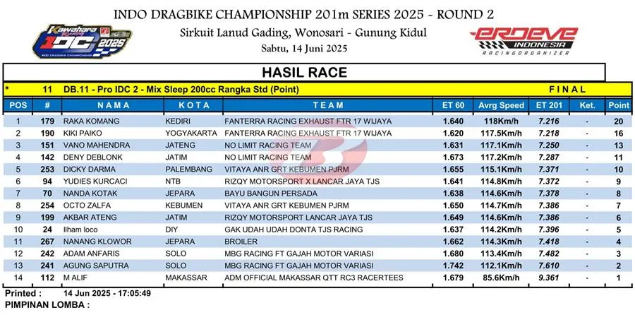 Kali ini kita bahas di kelas poin Pro IDC 2. Mengandalkan Raka Komang, pacuan racikan mas Aris Wijaya ini sukses menorehkan catatan bagus.