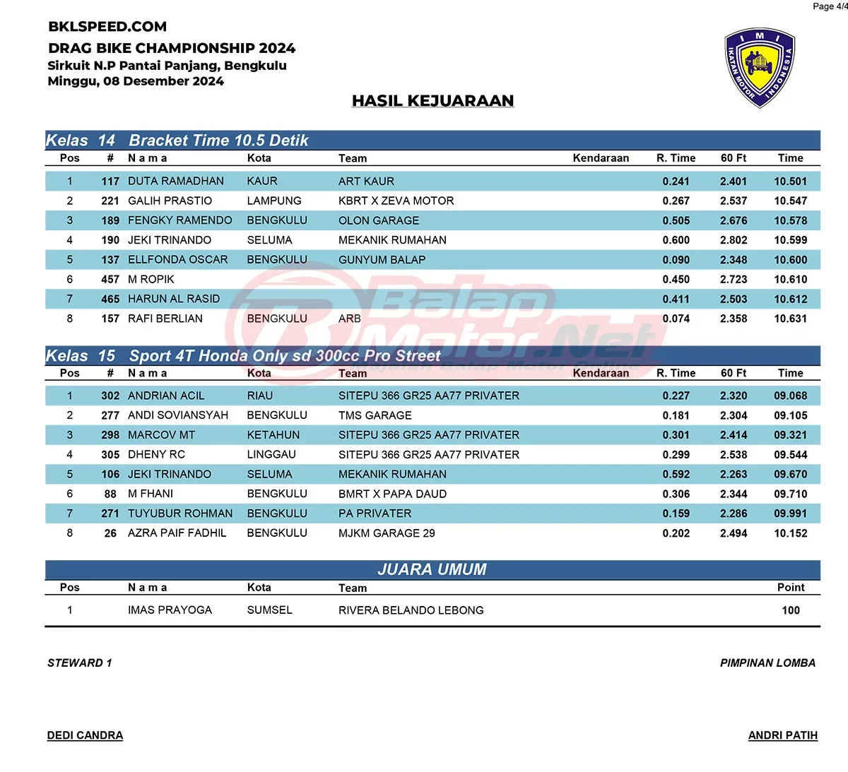 Imas Prayoga Sukses Sikat Gelar JU Open di BKL Speed Drag Bike, Nih Hasil Lengkapnya!
