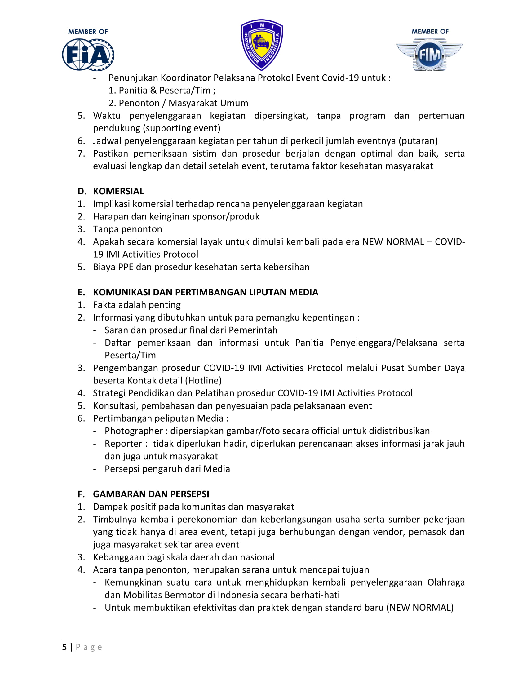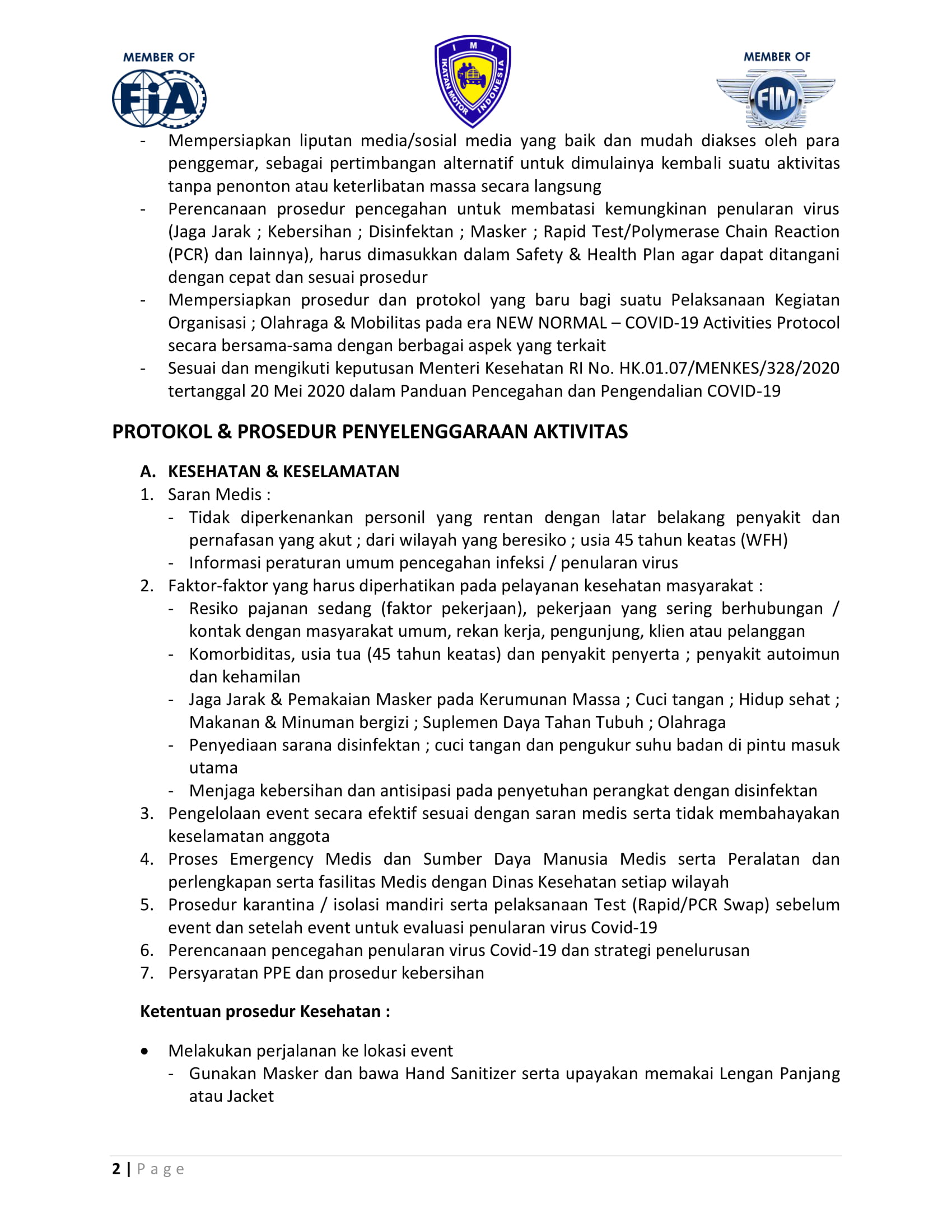 Setelah ada informasi tersebut, kali ini penulis mendapatkan informasi bahwa IMI telah membagikan informasi mengenai protokol aktivitas saat New Normal nanti. Dalam protokol tersebut semua dijelaskan dengan gamblang.