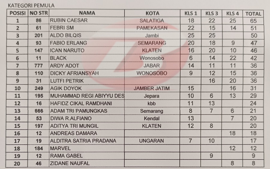 Tracker asal Salatiga dengan bendera Team86 itu berhasil mengumpulkan poin terbanyak dari tiga kelas poin pemula yang dilombakan. Rubin sendiri finis keempat, runner-up dan juara dengan total 65 poin.