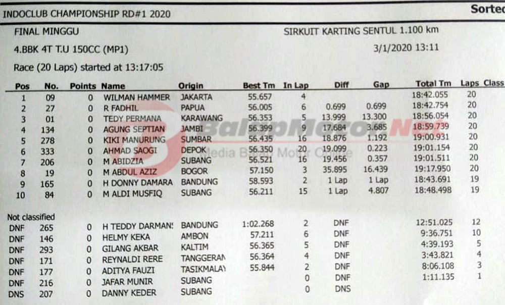 BalapMotor.Net – Willy Hamer tampil apik dalam debutnya bersama Honda Fastech. Hamer sukses menjadi juara dalam kelas MP1 kejuaraan Indoclub Championship 2020 putaran perdana yang berlangsung di sirkuit Sentul Karting, Bogor (1/3).