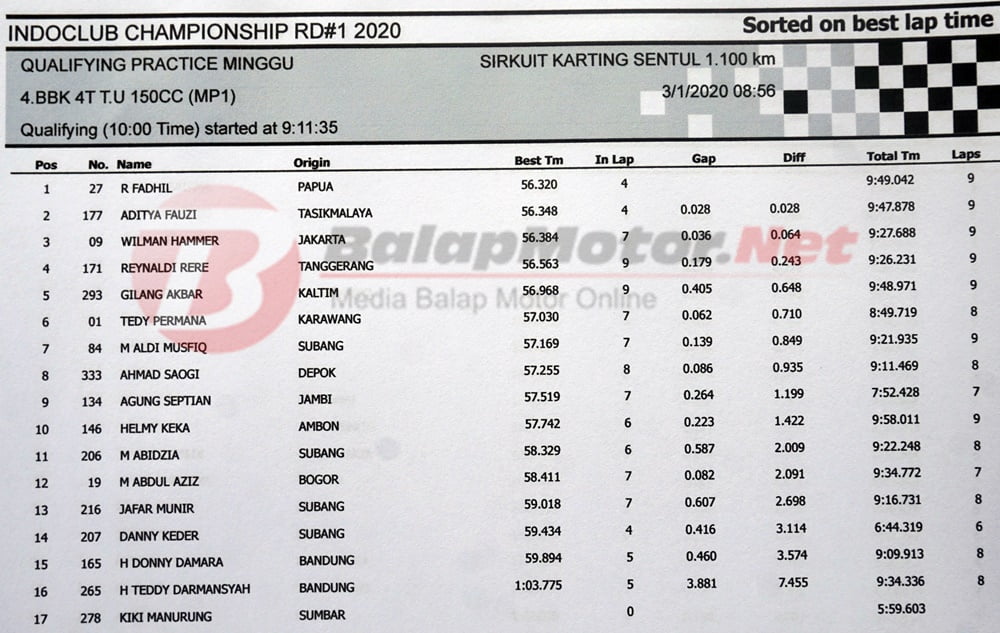 Di kelas ini terdaftar 17 peserta yang melakukan babak QTT. Mampukah Fadhil mempertahankan posisi terbaik di race nanti? kita tunggu aksinya.. | Yugo