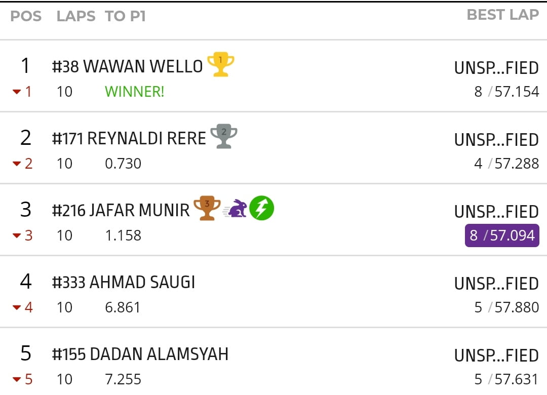 Hasil akhir Wello tak tersentuh dan mengantarkan Ninja racikan AB Bendol Salatiga ini di podium terhormat. | Yugo