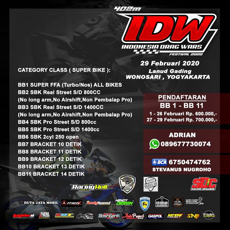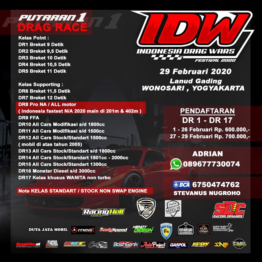 Beberapa tim pun dipastikan siap tempur. Yuk ikuti dan saksikan kejuaraan bergengsi Indonesia Drag Wars (IDW) 2020. | Yugo