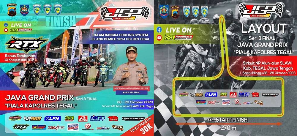 BalapMotor.Net – Java Grand Prix (JGP) 2023 akan segera memasuki babak final yang siap dihelat di sirkuit NP. Alun-alun Slawi, Tegal, Jawa Tengah pada akhir pekan ini, 28-29 Oktober 2023. Walaupun bukan sirkuit permanen, namun trek ini punya kelebihan khusus.