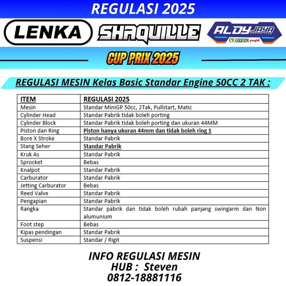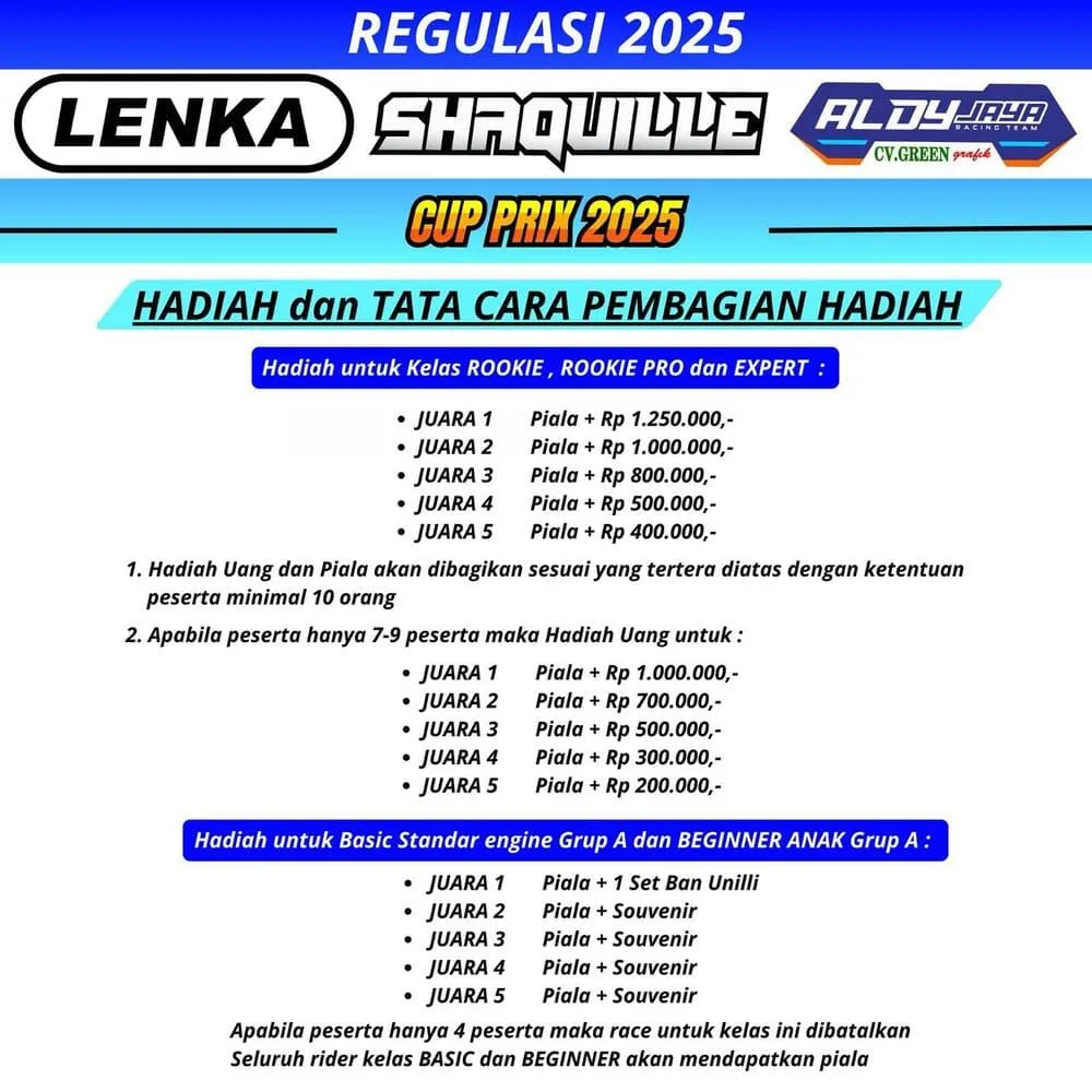 Ini Informasi Lengkap LENKA Shaquille Aldy Jaya Cup Prix 2025, Mulai Regulasi Mesin Sampai Hadiah!
