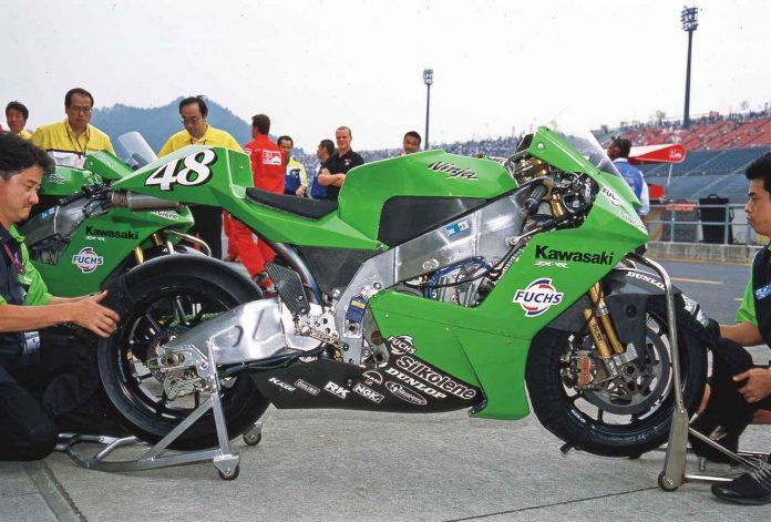 BalapMotor.Net – Saat ini Kawasaki merupakan raja di balap WorldSBK, Namun ternyata Kawasaki pernah turun di MotoGP. Motor Kawasaki di balap MotoGP diberi nama ZX-RR.