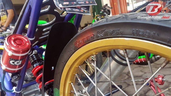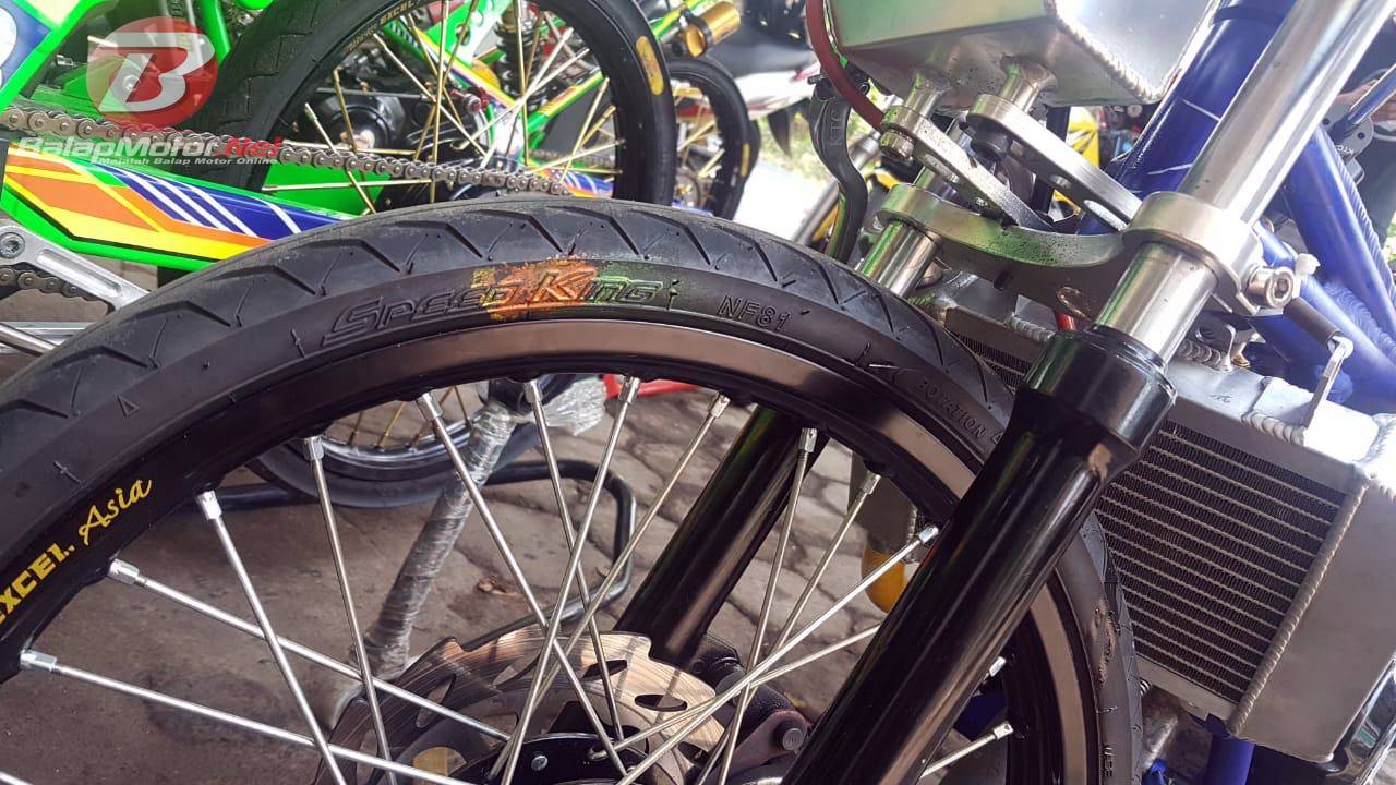 Ternhyata nih, selain motor yang kencang, serta joki yang handal, karet bundar merupakan salah satu faktor penunjang pembalap bernama lengkap Dicky Galih Ardiansyah mampu melesat cepat. Nah, ban IRC Speed King adalah ban yang dipasang di Ninja tunggangan Dicky GA. “Motor ini menggunakan ban IRC Speed King,” ungkap salah satu kru dari V-Reinz.