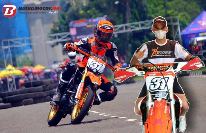 “Iseng saja mas ikut balap di sini, kangen juga karena sudah hampir setahun gak ada balapan. Jadi untuk melepas rindu sekaligus sebagai ajang berlatih dan mengasah mental lagi,” ujar Gerry dengan bendera tim 76 Rider Supermoto.
