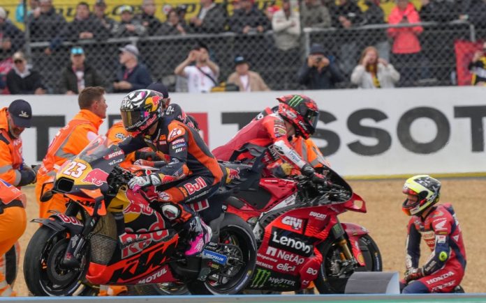BalapMotor.Net – Enea Bastianini menjadi dalang atas kecelakaan di awal balapan MotoGP Le Mans, Prancis pekan kemarin. Tepatnya di dua tikungan awal saat ia menyentuh Pecco Bagnaia.