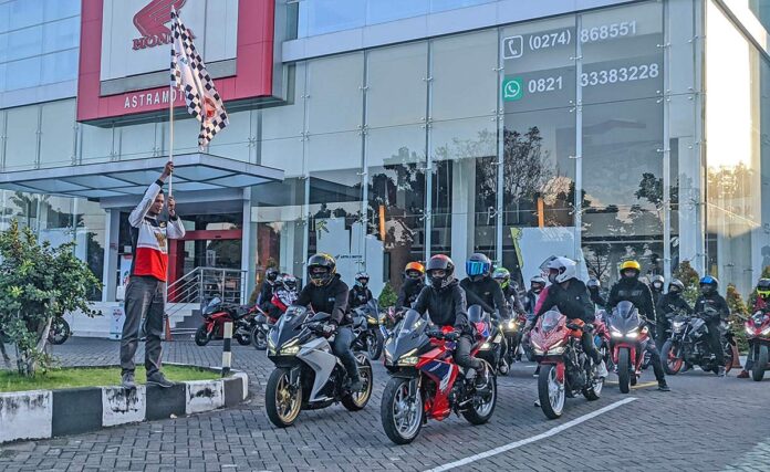 Berkumpul di Astra Motor Center Yogyakarta, 50 peserta perwakilan dari Cub & Sport Paguyuban Motor Honda Yogyakarta, CBR Owner Temanggung (CROM), dan Magelang CBR Community (MACNITY) mengikuti briefing bersama instruktur safety riding.