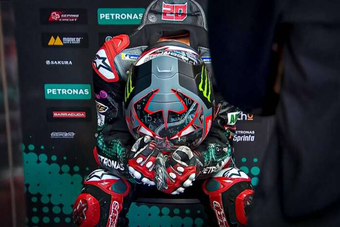 BalapMotor.Net – Meskipun tertinggal 37 poin dari Joan Mir (Suzuki Ecstar) sebelum GP Valencia kemarin, Fabio Quartararo sebenarnya sangat bersemangat untuk mengejar ketertinggalannya tersebut. Tetapi, pada race GP Valencia kemarin (15/11), Quartararo malah terjatuh.