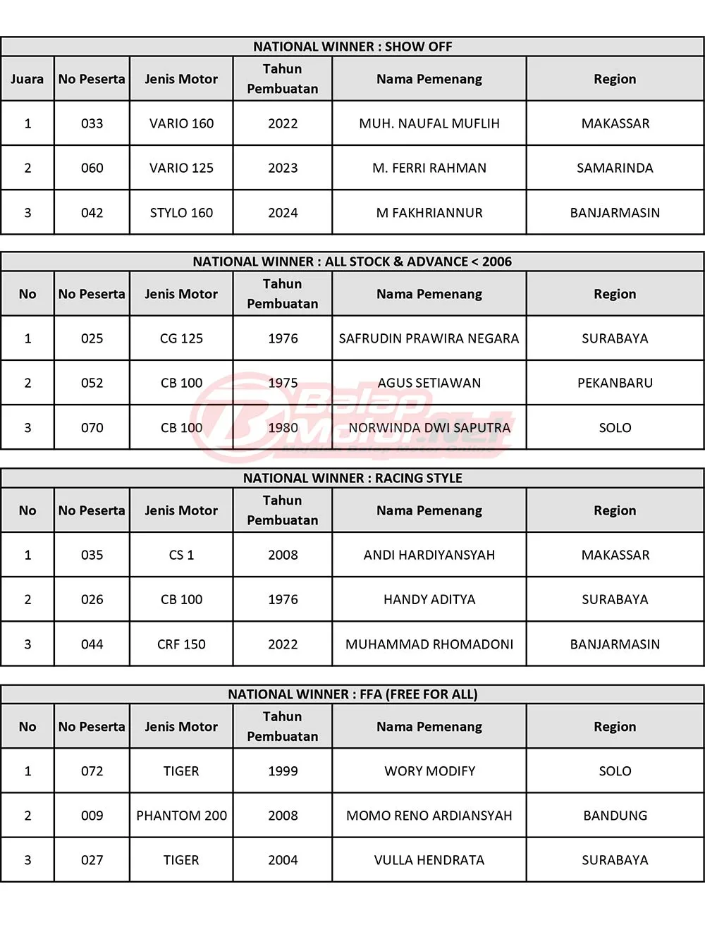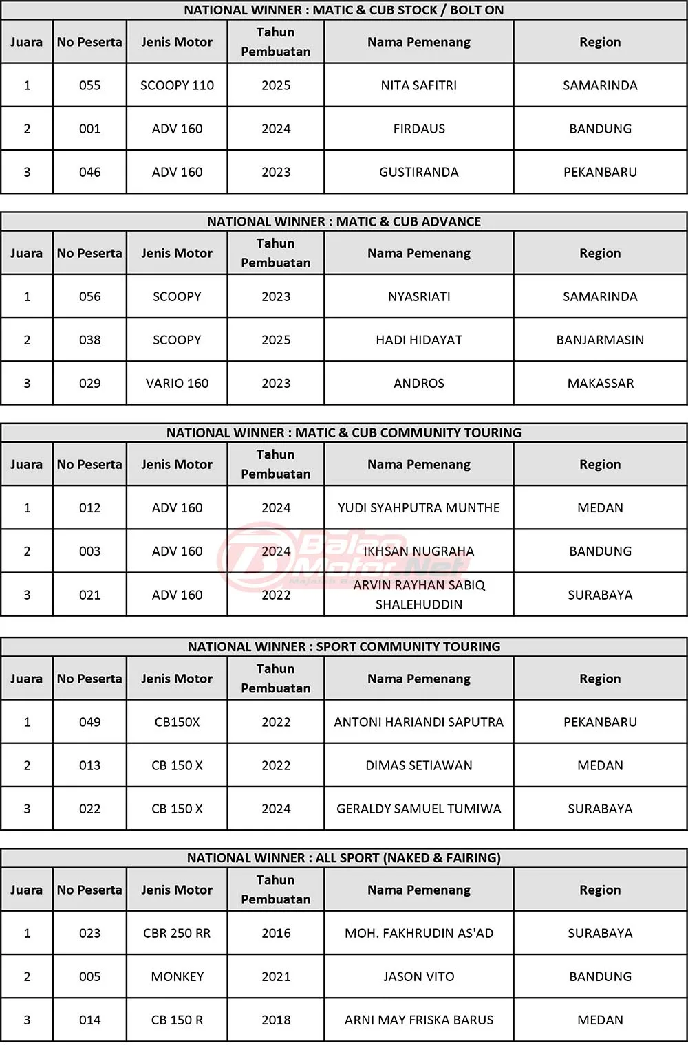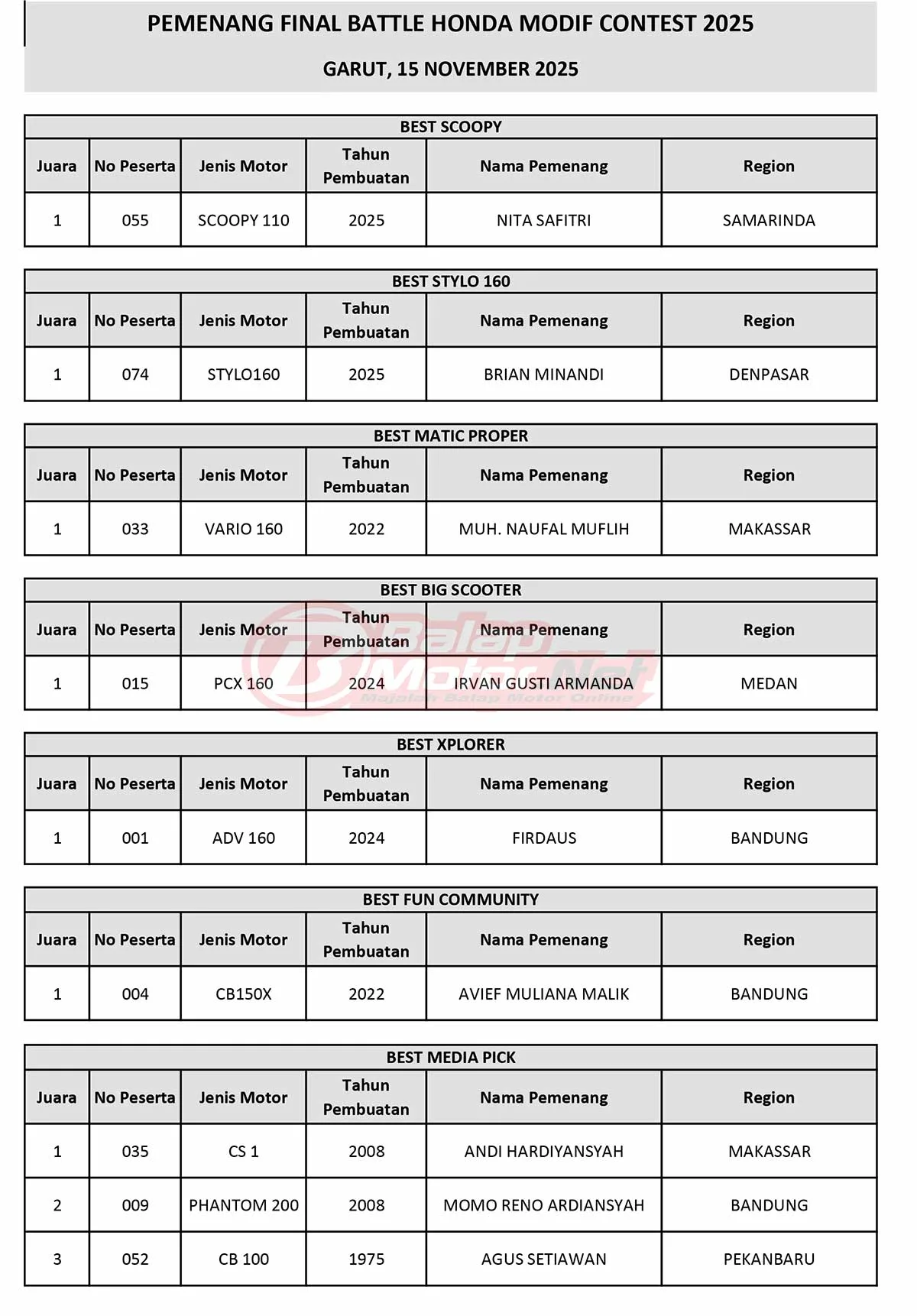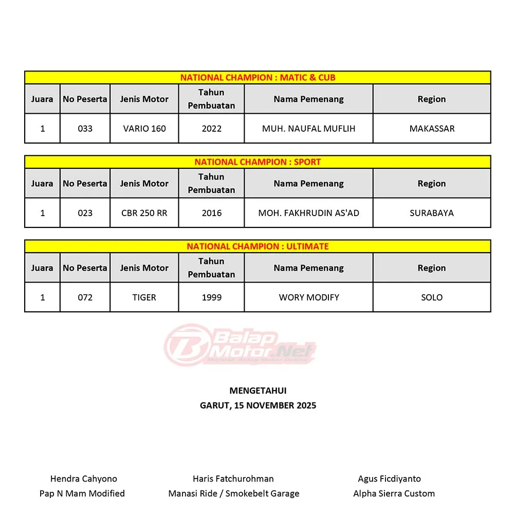 Daftar Pemenang Final Battle Honda Modif Contest 2025
