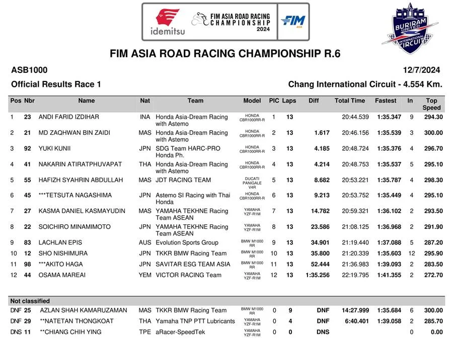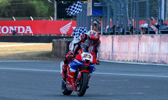 BalapMotor.Net – Andi Farid Izdihar, pembalap asal Sulawesi Selatan, berhasil meraih kemenangan gemilang pada Race 1 di Kejuaraan Asia Road Racing Championship (ARRC) putaran final yang digelar di Sirkuit Chang, Buriram, Thailand.