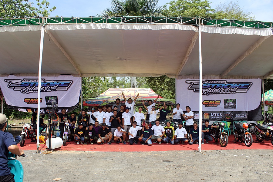 “Iya mas kita turunin total ada 7 motor dibalapan kali ini, kita kolaborasi dengan CMC Lampung dan Cebong Moratai, 2 Stroke Addicted ini kan komunitas anak-anak muda Lampung yang hoby motor spesialis 2 tak kebetulan suka balapan semua, jadi kita turun balapan ini sekaligus silahturahmi.” ungkap Rifki Pratama selaku manager tim kepada penulis.