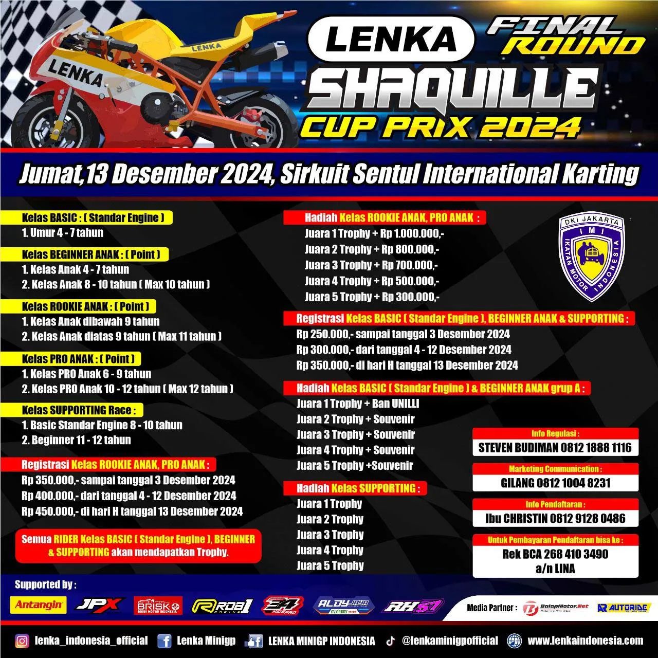 BalapMotor.Net – Gelaran final LENKA Shaquille Cup Prix 2024 yang akan diselenggarakan di sirkuit Sentul Karting, Bogor pada hari Jumat 13 Desember 2024, kelas Rookie 9 Tahun UP menjadi kelas yang bakalan sangat seru.