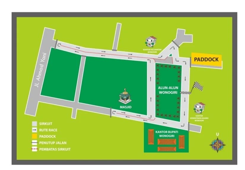 Yang menarik di sirkuit Alun-Alun Wonogiri dalam gelaran Kejurprov akhir pekan ini adalah desain sirkuitnya. Seperti yang sudah tersebar, desain treknya bakalan berbeda dengan saat jadi tuan rumah Kejurnas Motoprix di 2016.