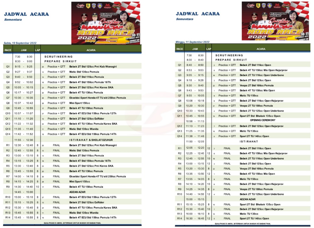 Perlu diketahui juga bahwa pada balapan akhir pekan ini, pada hari Sabtu juga sudah ada race. So, bagi balap mania yang mau merapat jangan lupa Sabtu juga merapat karena sudah ada race.