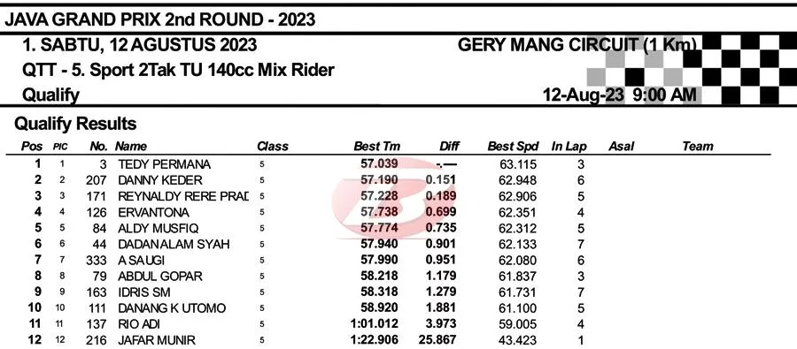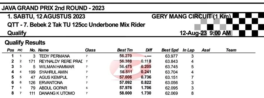 Menariknya saat QTT Underbone 125cc, Tedy Permana sempat mendapat masalah dan hanya melewati empat putaran saja. Akan tetapi dirinya tetap berhak atas pole position. Mantap!