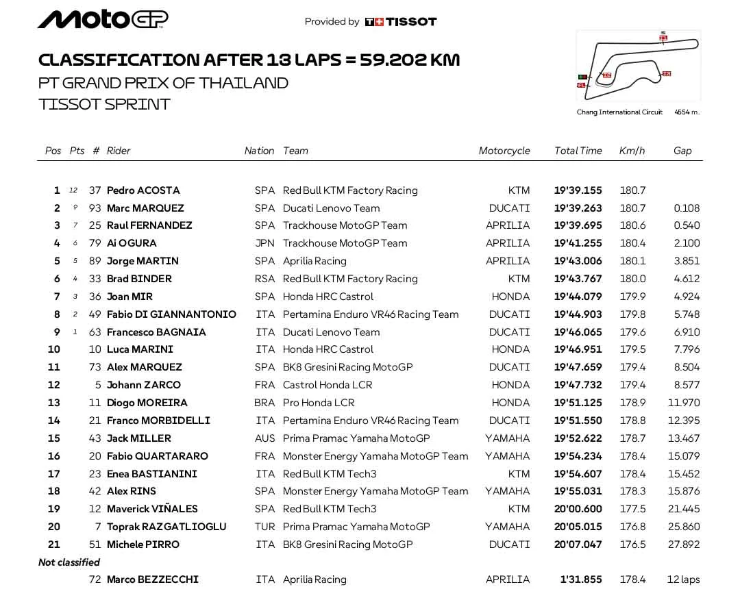 BalapMotor.Net – Pedro Acosta akhirnya meraih kemenangan perdananya di kejuaraan dunia MotoGP. Ia menjadi yang terbaik pada pertarungan Sprint Race MotoGP Thailand 2026.