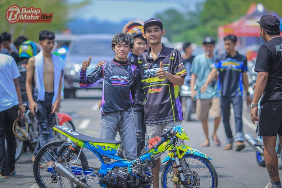 Motor hasil garapan Aji Bajing ini akhirnya pecah telor dan meraih hasil memuaskan. Perlu diketahui juga, bahwa ternyata motor berklir biru berkombinasi kuning baru 3 kali turun balapan.