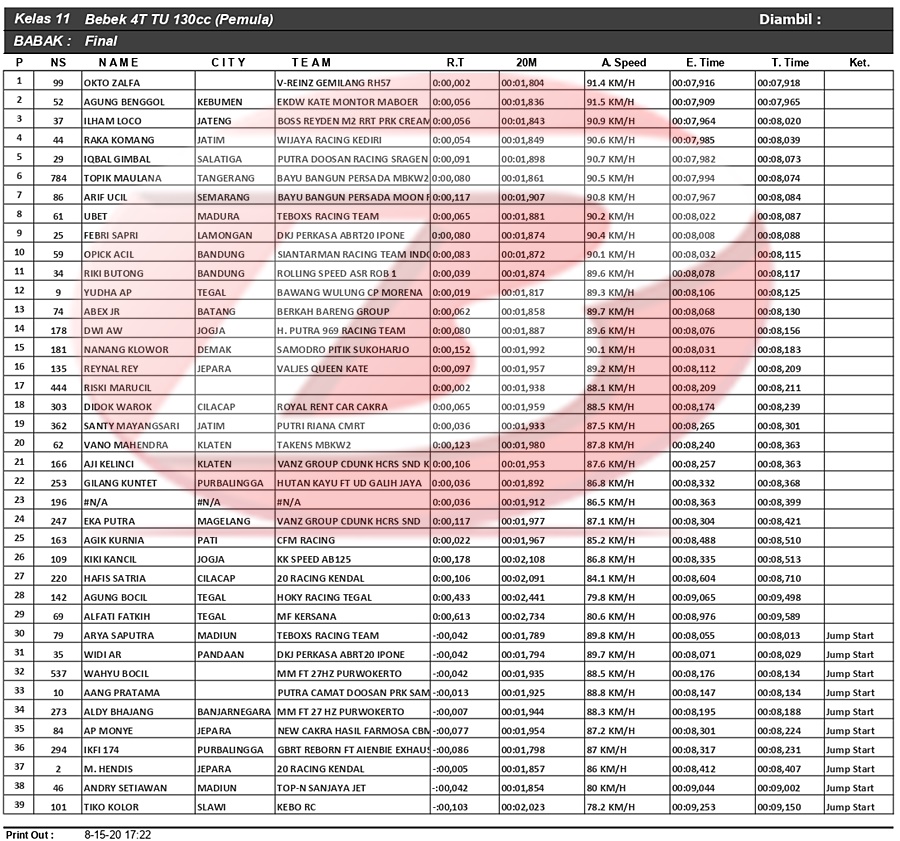 Catatan rider muda asal Kebumen ini pun justru lebih baik dari waktu yang diciptakan di kelas open. Okto Zalfa di kelas pemula sanggup catatkan 7,918 detik, sementara juara open 7,921 detik.