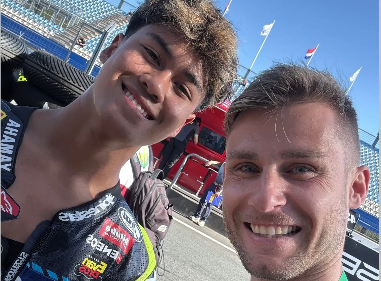 “Sebenernya tahun lalu (2024) waktu di Aragon sempat dipanggil sama Jules Cluzel. Jadi Jules Cluzel itu nge-chat sama mas Galang pengin ketemu sama saya terus habis itu dia bilang katanya kalau ngeliat Aldi ketika balap itu selalu merinding, dia kaya melihat seperti dia waktu dulu saat balap,makanya dia pengen gabung buat menjadi coachnya.” ujar Aldi.