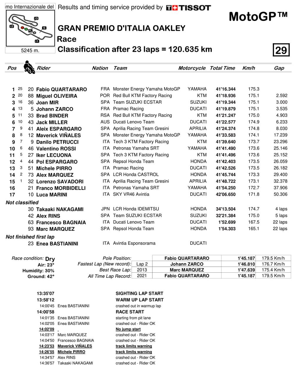 BalapMotor.Net – KTM meriah hasil terbaiknya pada musim ini dalam Gran Premio D’Italia Oakley yang berlangsung di sirkuit Mugello, Minggu (30 Mei). Miguel Oliveira berhasil mengamankan podium kedua serta Brad Binder sukses di posisi kelima.
