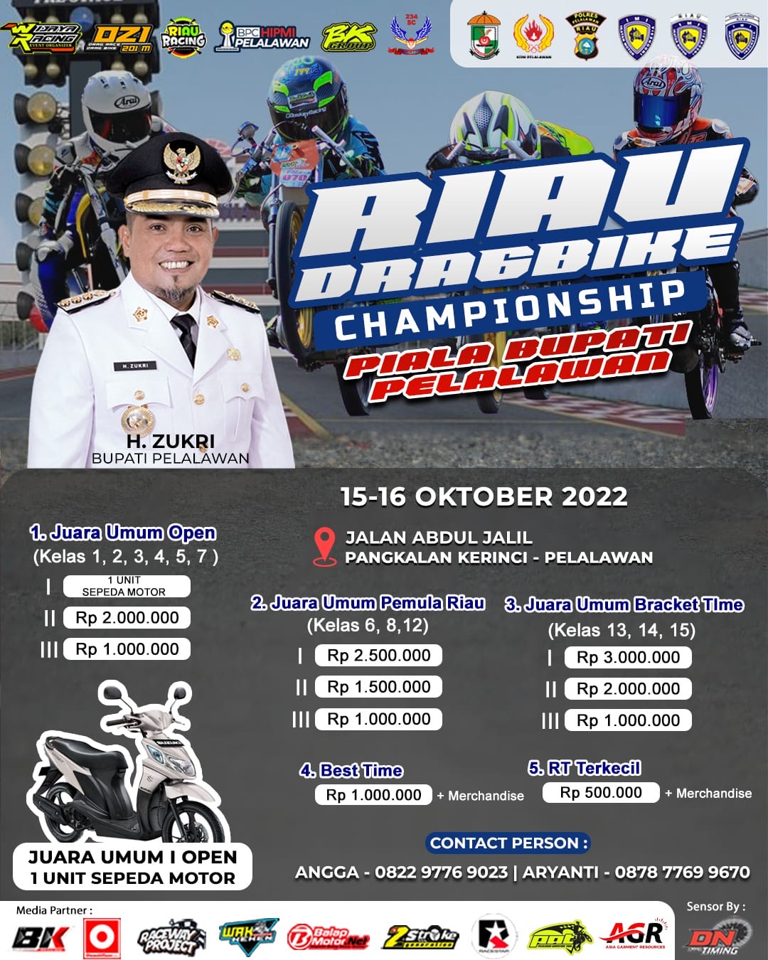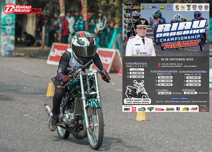 BalapMotor.Net – Kejuaraan Daerah Riau Dragbike Championship Piala Bupati Pelalawan bakal digelar akhir pekan ini di sirkuit NP. Jalan Abdul Jalil, Pangkalan Kerinci, Riau (15-16 Oktober 2022).