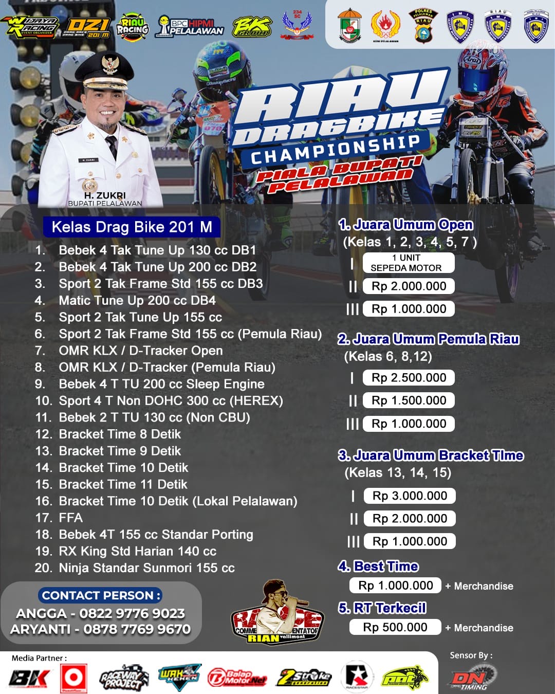 Tidak tanggung-tanggung untuk juara umum open akan di ganjar 1 unit sepeda motor . So,bersiaplah untuk mengikuti hajatan Kejuaraan Riau Dragbike Championship Piala Bupati Pelalawan berlangsung mulai dari hari sabtu hingga minggu. |Halim