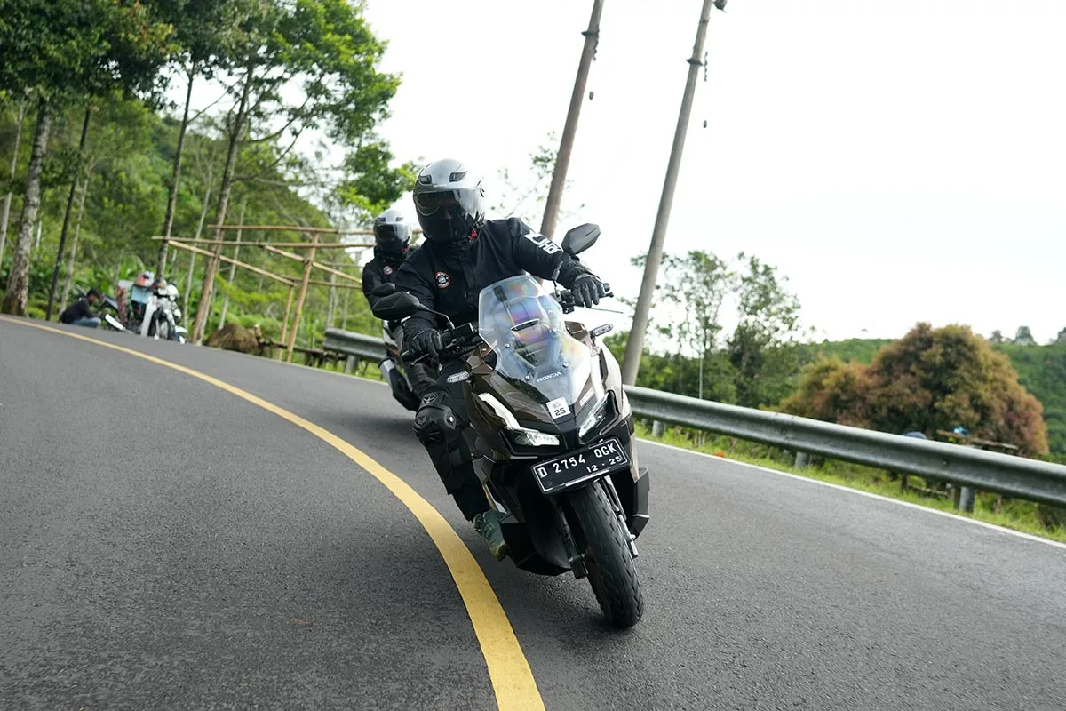 Memulai perjalanan dari kawasan Ciwidey, peserta langsung disuguhkan panorama kebun teh dan pegunungan yang diselimuti kabut tipis. Jalur menuju Naringgul didominasi turunan panjang dan tikungan berkelok yang menguji keterampilan berkendara. Fitur Anti-lock Braking System (ABS) bekerja optimal dalam mengontrol pengereman saat melibas turunan tajam, sementara Honda Selectable Torque Control (HSTC) menjaga traksi ban tetap stabil pada permukaan jalan yang lembab. Kombinasi kedua fitur ini meningkatkan rasa aman sekaligus menambah percaya diri rider dalam setiap manuver.