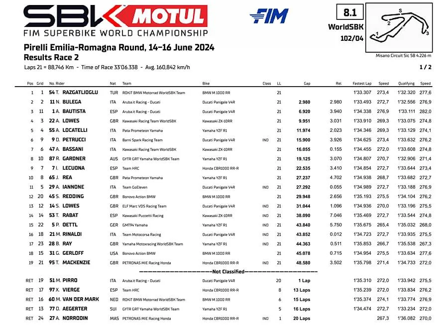 Hasil Race 2 dan Klasemen WorldSBK 2024: