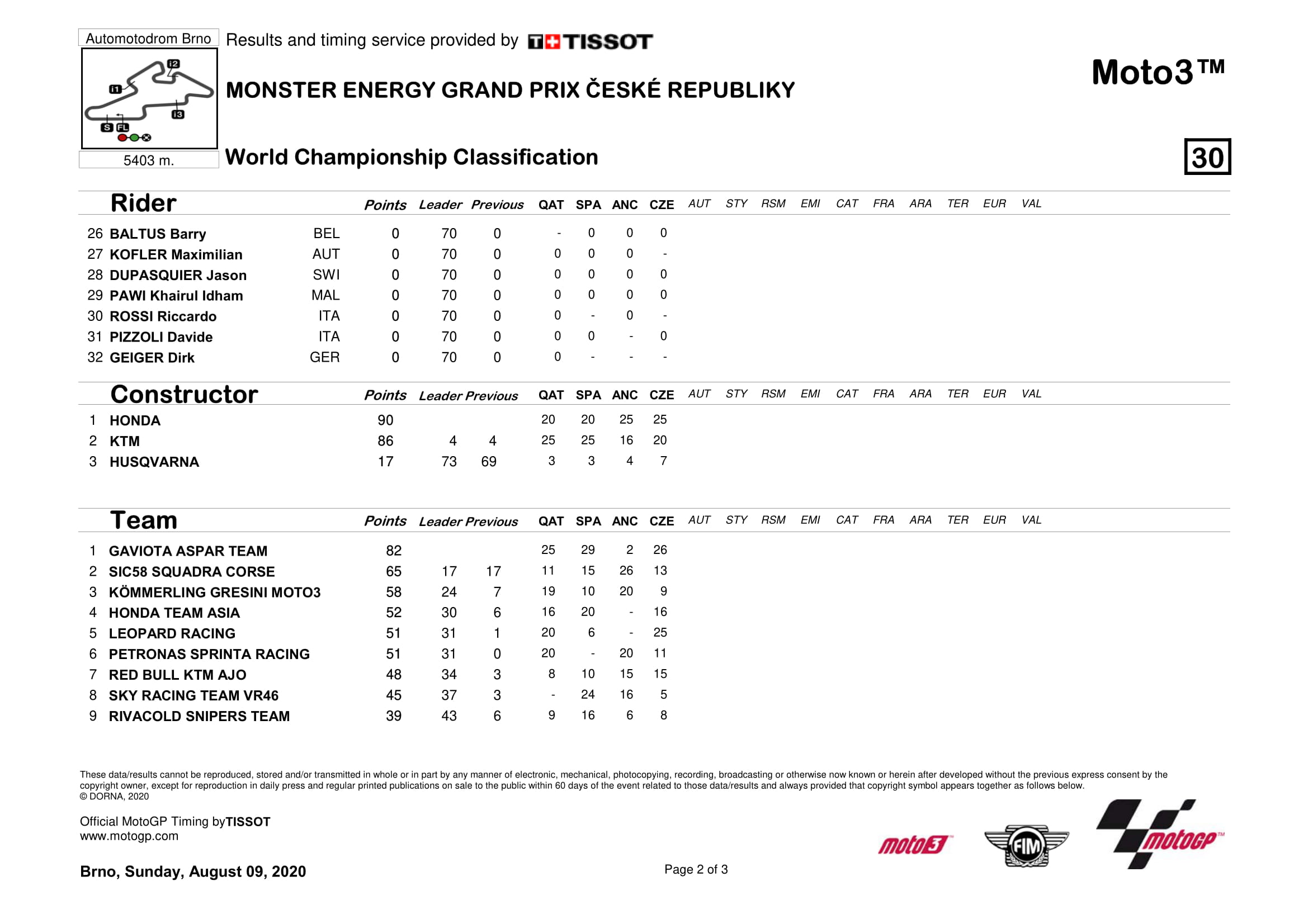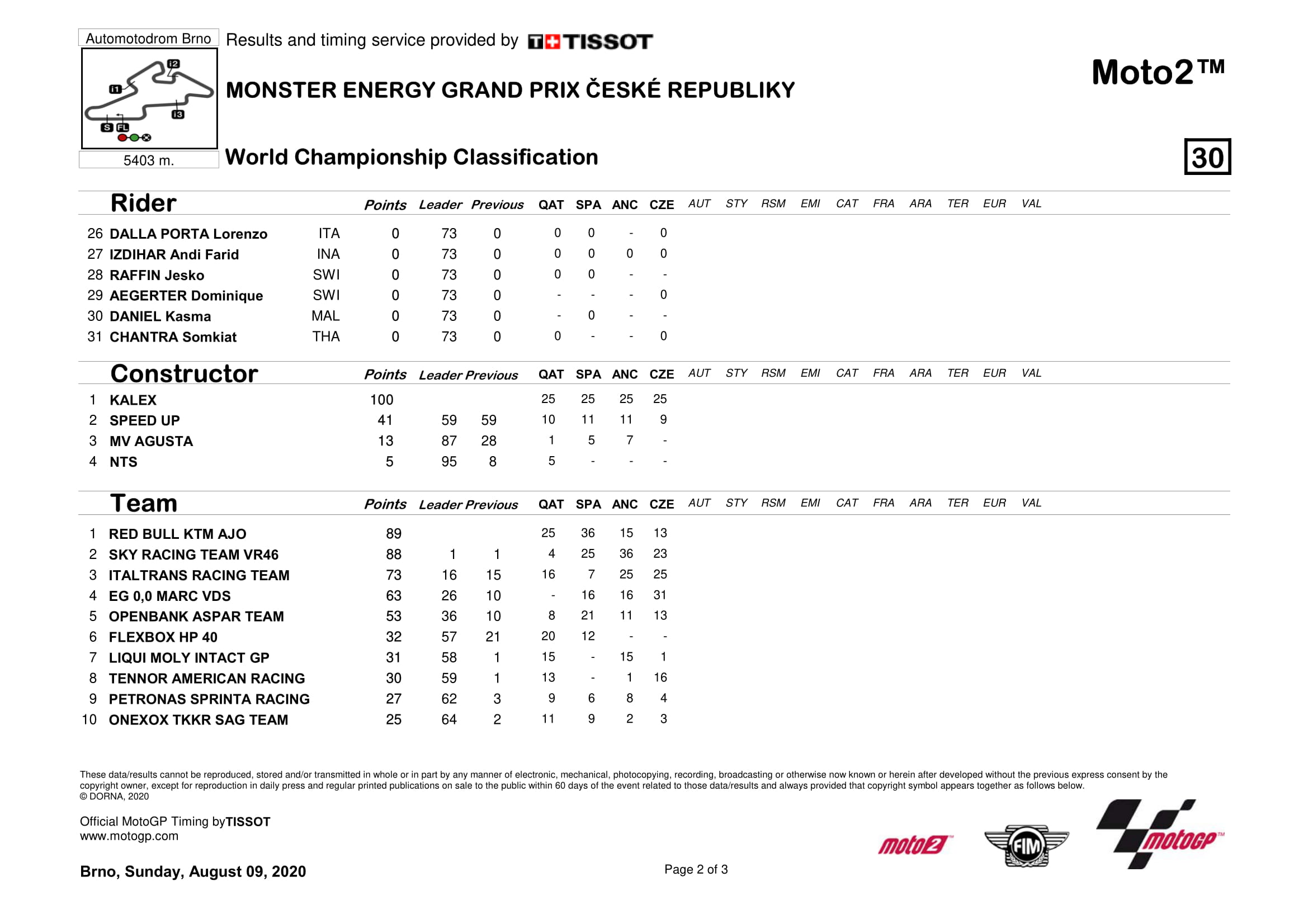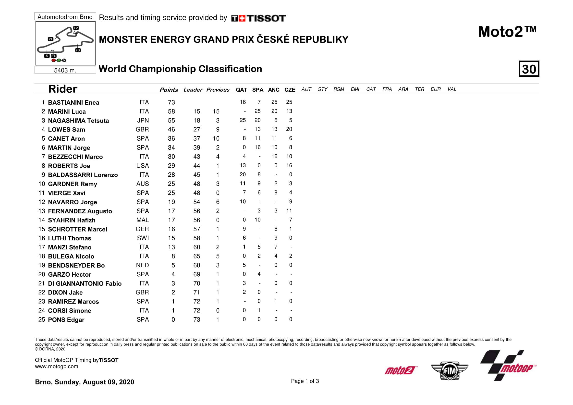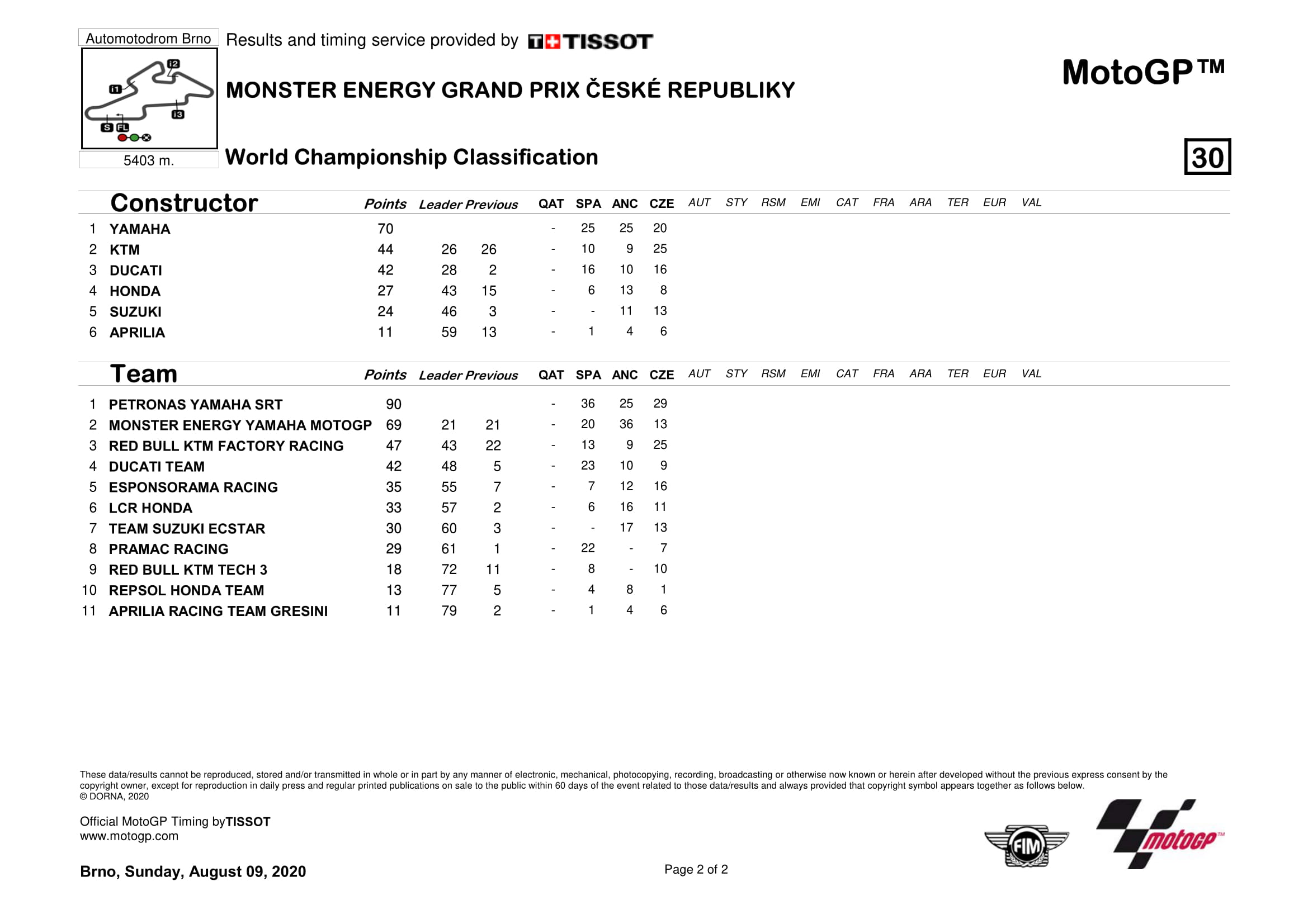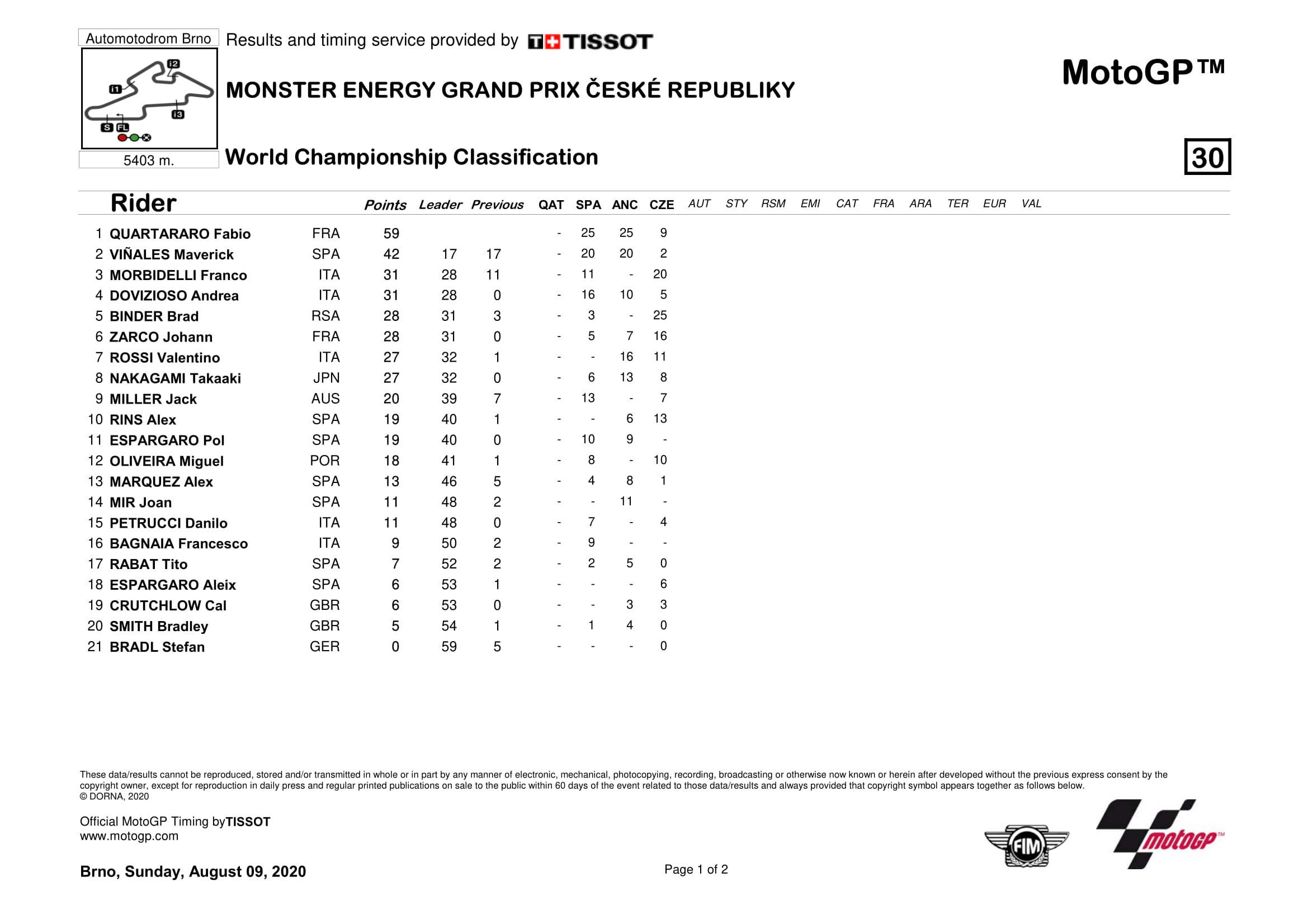 Klasemen MotoGP 2020 Semua Kelas Setelah Seri Ceko