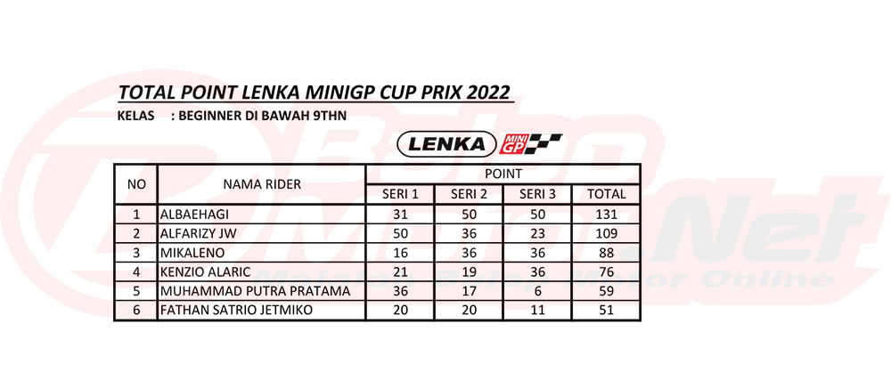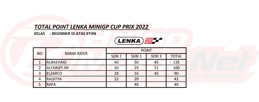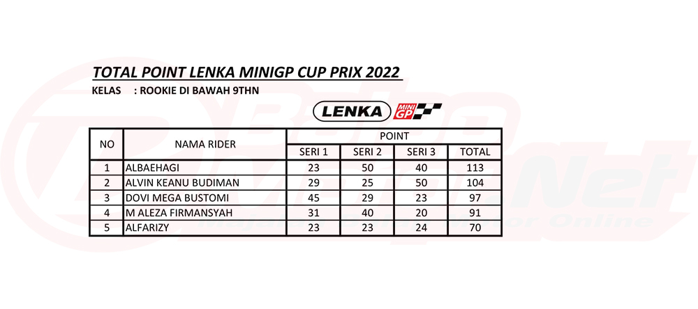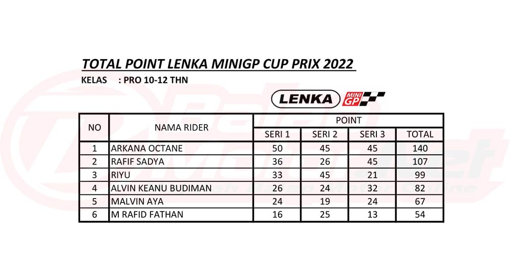 BalapMotor.Net – Pada 20 November 2022, gelaran LENKA MiniGP Cup Prix 2022 bakalan digelar sesi finalnya. Tentunya pada gelaran ini akan ditentukan siapa saja yang akan meraih gelar juara umum.